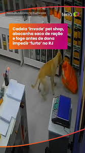 Veja Vídeo – Cadela ‘invade’ pet shop, abocanha saco de ração e foge antes de dona impedir ‘furto’