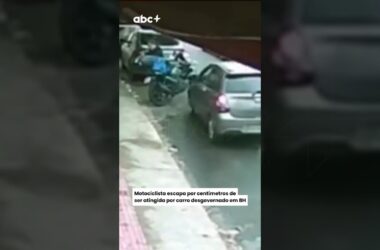 Uma motociclista escapou por poucos segundos de ser atropelada após um carro desgovernado atingir sua moto e outros veículos estacionados na Rua Salgueiro, no bairro Ipiranga, na Região Nordeste de Belo Horizonte, na tarde desta segunda-feira (29).