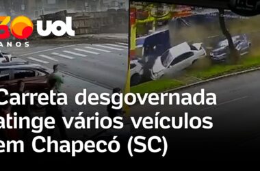 Um caminhão desgovernado atingiu oito veículos em uma avenida de Chapecó (SC) na tarde de ontem. Ao menos dez pessoas ficaram feridas; quatro delas precisaram ser retiradas das ferragens.